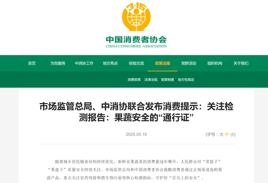 市场监管总局和中国消费者协会提示消费者通过正轨渠道选购果蔬产物,守护好“舌尖上的平安”。消费者尽量选择正轨超市、电商平台等监管严酷的渠道选购果蔬产物,我国现行《食物平安国度尺度 食物中农药最大残留限量》(GB 2763—2021)和《食物平安国度尺度 食物中2,4-滴丁酸钠盐等112种农药最大残留限量》(GB 2763.1—2022)明白了586种农药正在376种(类)食物中10293项残留限量尺度,叶菜类流水冲刷后浸泡15分钟,《食物平安国度尺度 预包拆食物中致病菌限量》(GB 29921—2021)即食果蔬成品中沙门氏菌、大肠埃希氏菌等致病微生物不得检出。